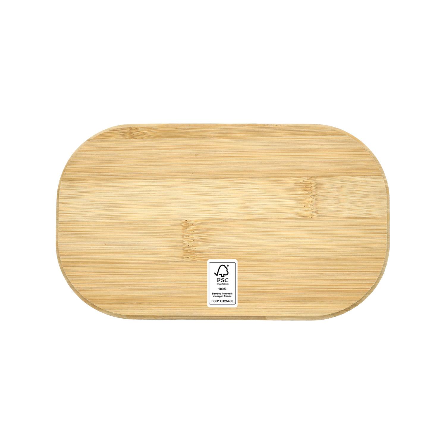 Eco-friendly lunch container made with gray recycled PP material and topped with a stylish FSC Bamboo clip. Comes with a convenient white fork and dressing container. This container is freezer safe, BPA-Free, and has a unique FSC® supplier certificate code: SCS-COC-007184. Please note, it is not recommended for dishwasher or microwave use; hand wash only for best results. Make a sustainable choice with this chic and functional lunch container. Complies with FSC, Prop 65. 7.25″ L x 4.25″ H x 2.75″ W
